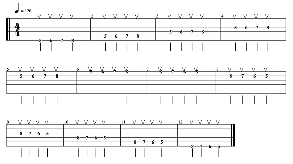 全てアップピッキングで弾くという練習をやっていこうと思います